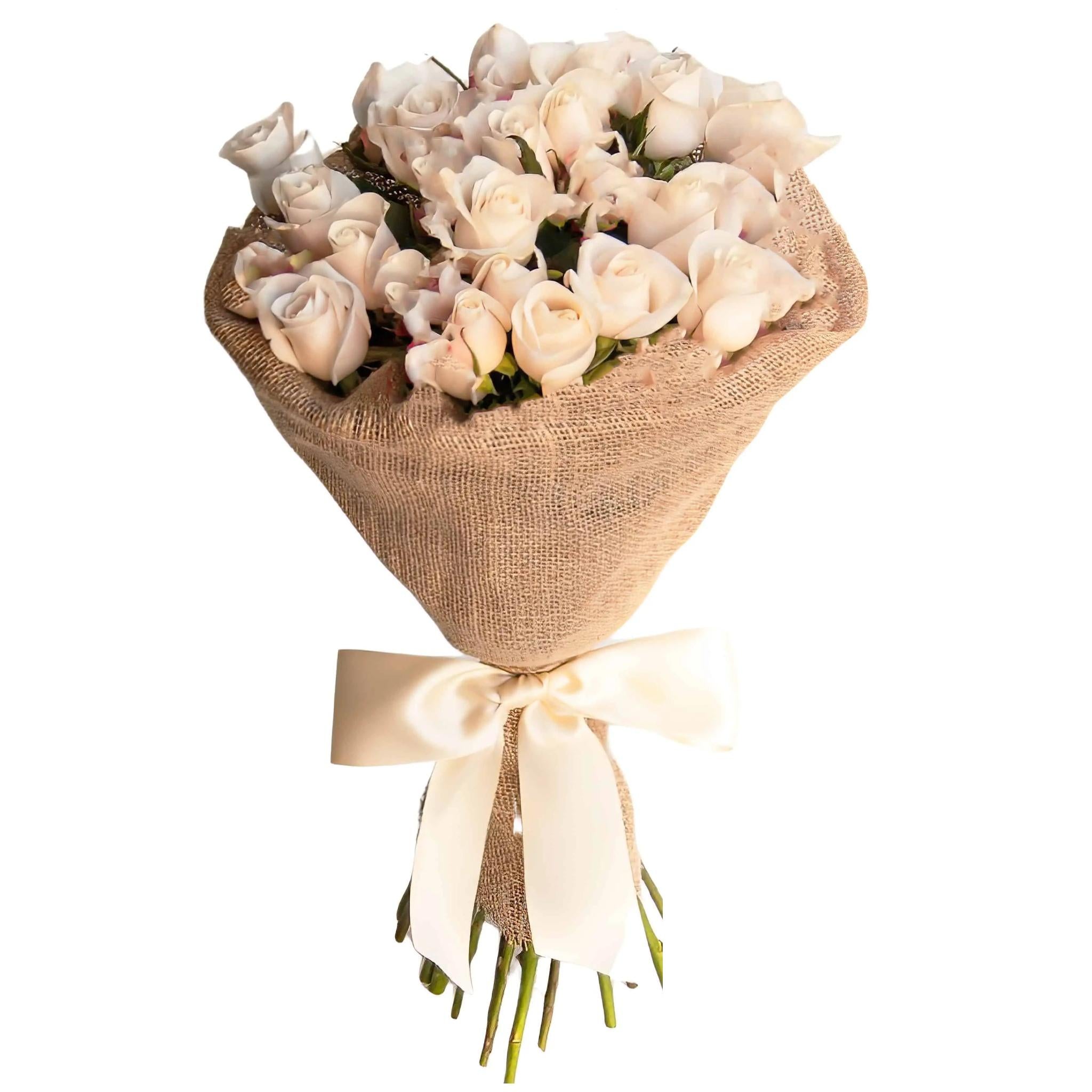 Pure beauty is what you will be giving with this impressive wrap of two dozen Imported Roses. Rose colors are subject to availability. We recommend a fresh cut before your recipient adds them to a vase. Same day orders may have a variety of colored roses.