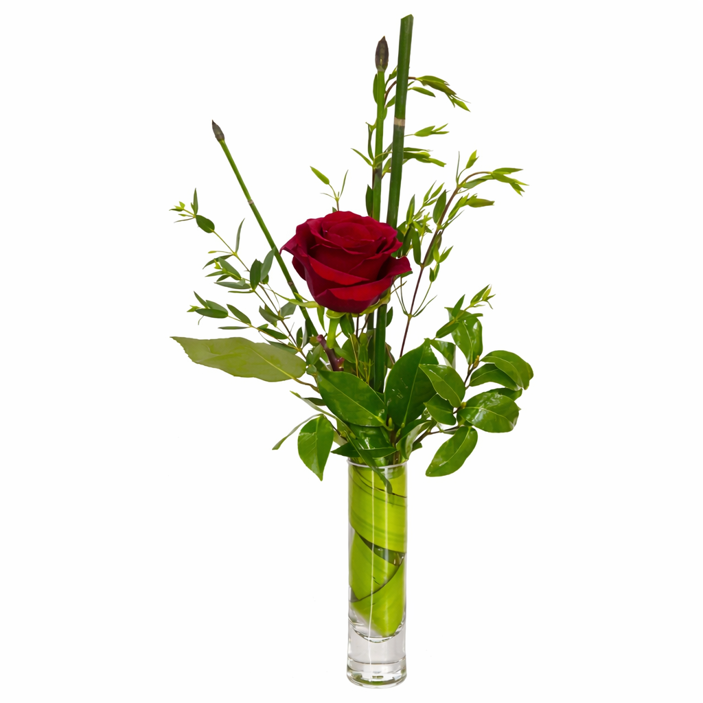 A single rose never looked so stunning! Seasonal greens will set this single Rose on fire for an arrangement that is sure to incite passion in your relationship! If you want a classy way to send a single rose, then this is the way to do it!