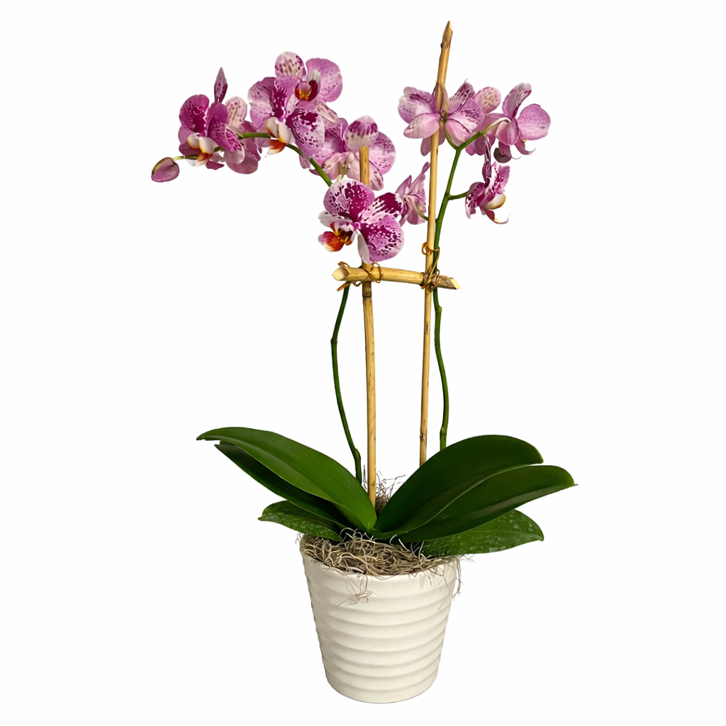A staple orchid for any office or home decor! This orchid comes in a variety of colors and makes the perfect gift for any occasion (18-24'' tall and 10-12'' across)! Please allow one day notice for delivery and if you want a brighter color give us a call or email us for other colors available.