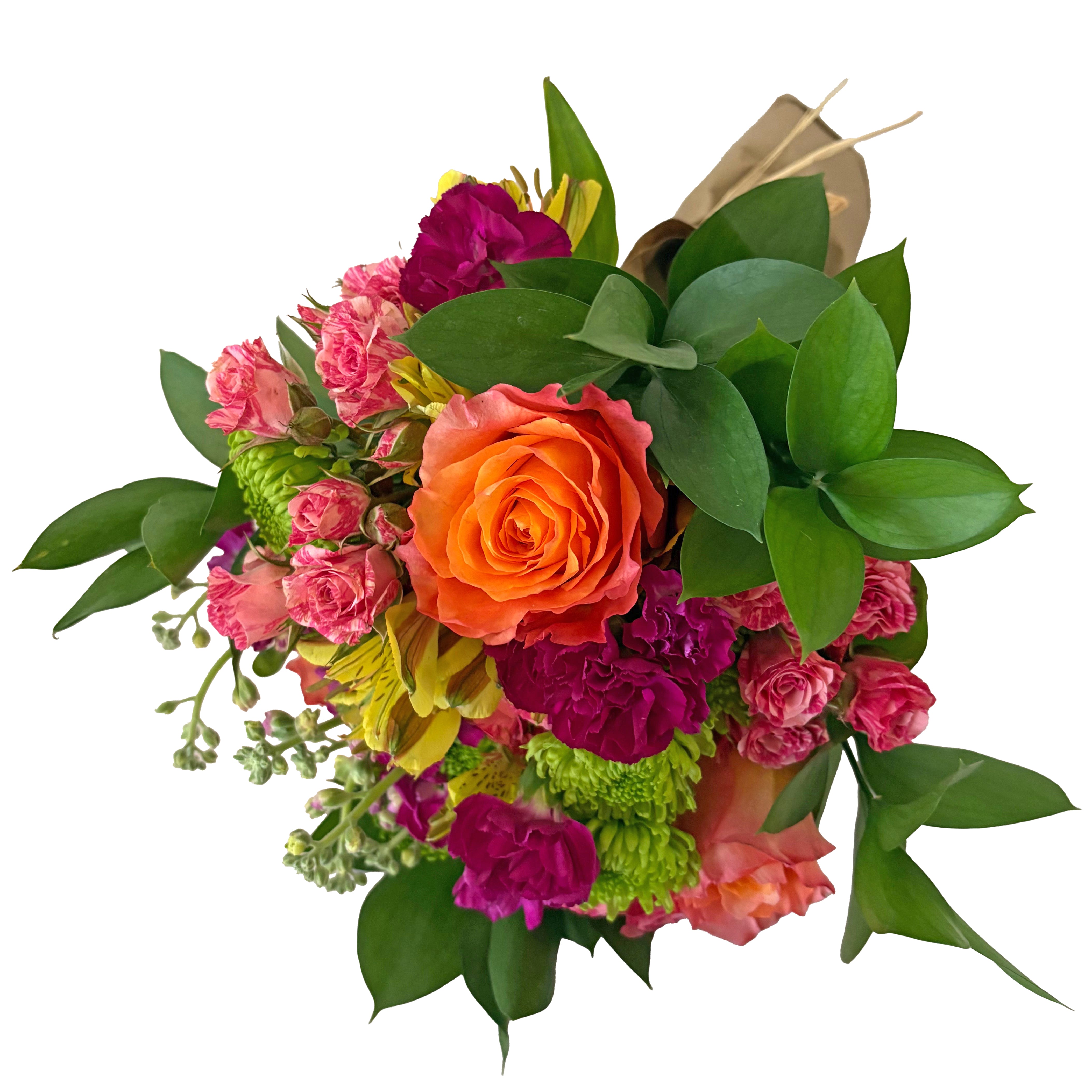 This is a great bouquet of colorful seasonal flowers that will change day to day, season to season, but we'll be sure to ''WoW'' you with beauty in each one! Perfect for that person who doesn't need a vase!