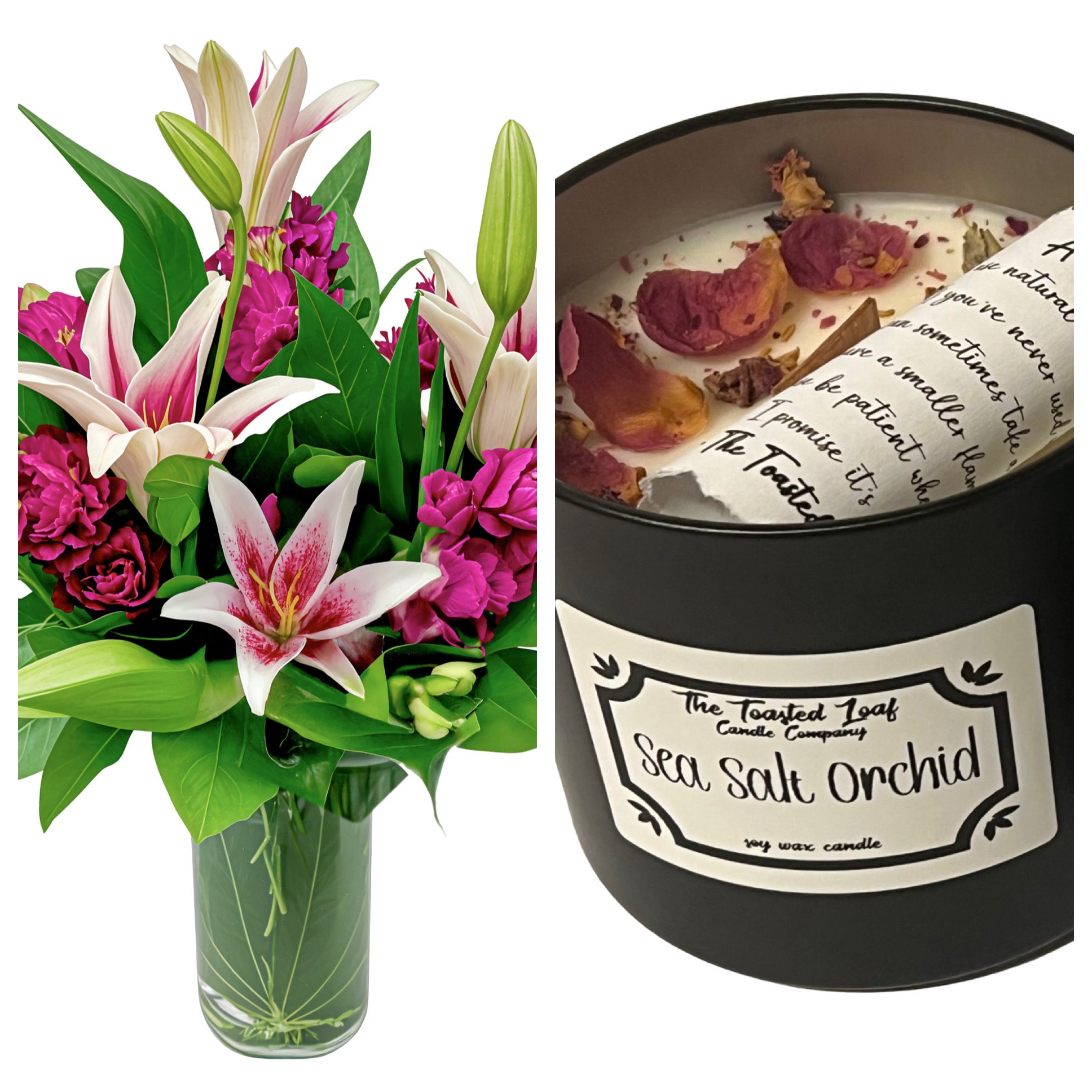 Want to send the best gift ever? We've got it with this duo; our fan favorite Lovin' Lilies arrangement and an amazing Sea Salt Orchid scented candle made by the cutest 12 year-old entrepreneur in Austin! Gift one before they are gone!