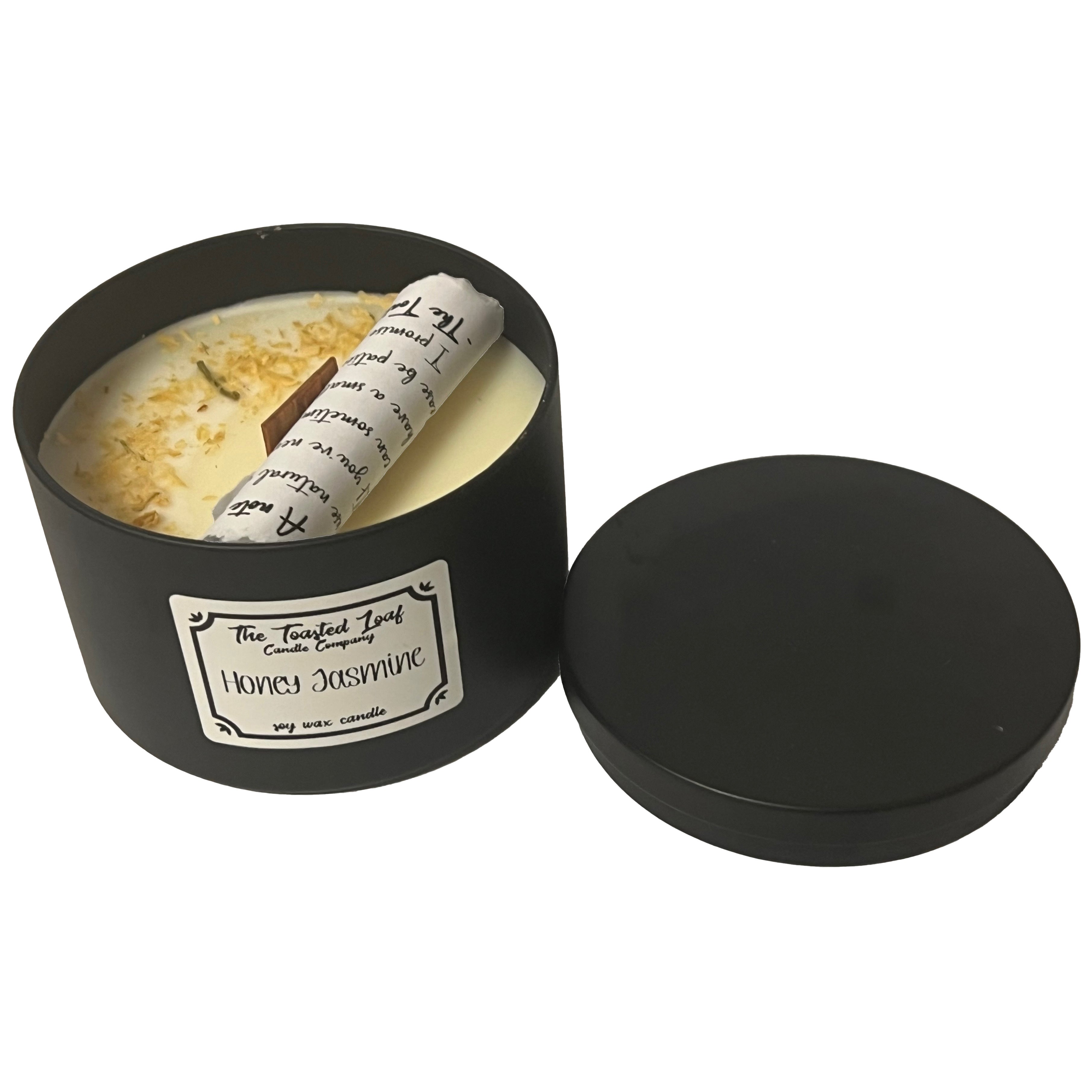 This amazing Jasmine and Honey scented 8oz. wooden wick candle was made by a 12 year-old entrepreneur here in Austin, Texas. She owns and operates The Toasted Loaf Candle Company with her family's support and makes the most amazing candles anywhere in Texas!!